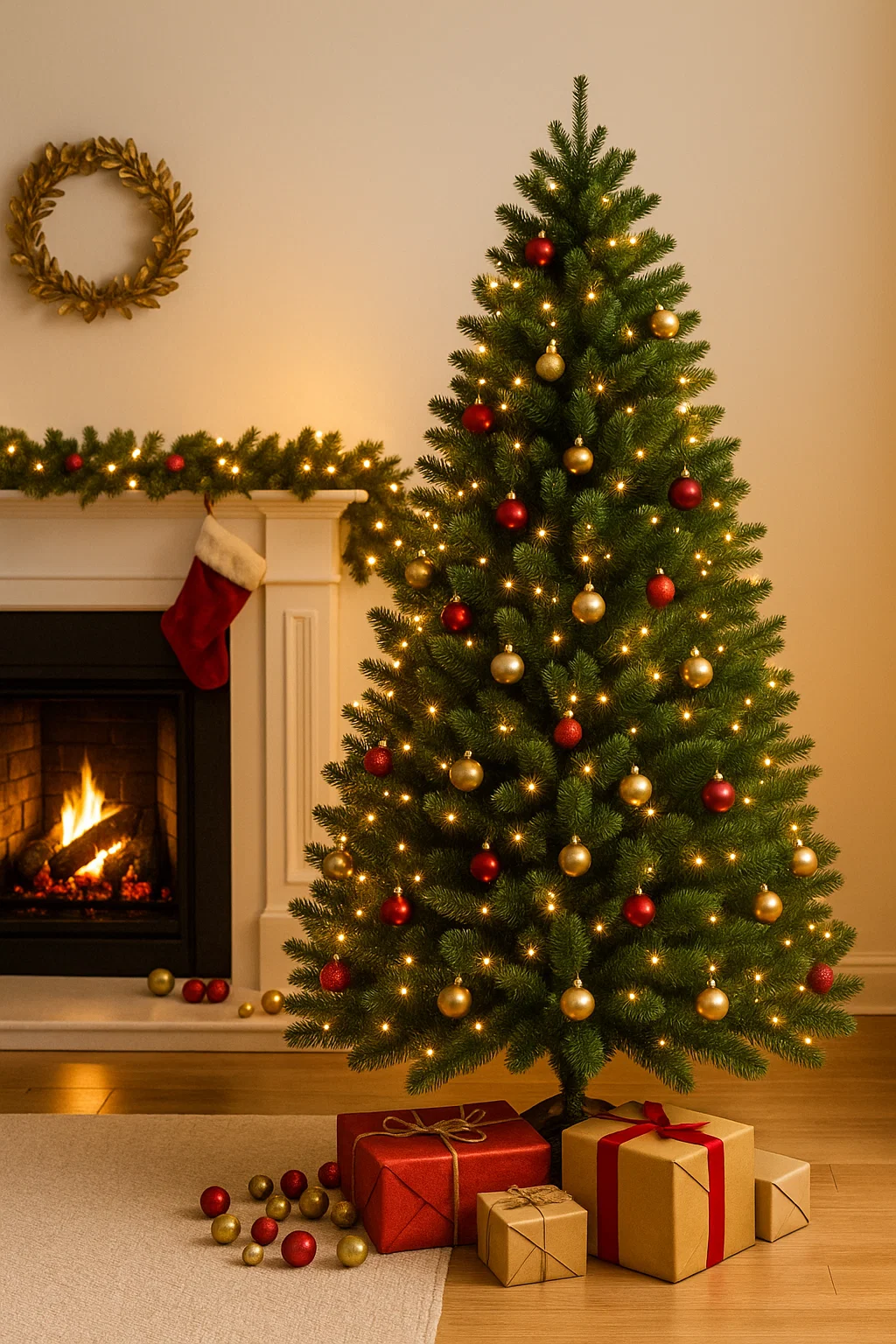 Una de las decisiones más cruciales es la altura del árbol . Antes de comenzar a comprar, mida su espacio. Considere la altura de su techo y recuerde dejar espacio para un topper de árbol, generalmente al menos 6-12 pulgadas. Los árboles generalmente se miden desde el piso (incluido el soporte) hasta la punta más alta. Un árbol que es demasiado alto se verá apretado, mientras que uno que es demasiado corto puede perderse en una habitación grande. Las alturas más comunes para los árboles artificiales son 6.5 pies, 7.5 pies y 9 pies, que se ajustan bien en las habitaciones estándar.